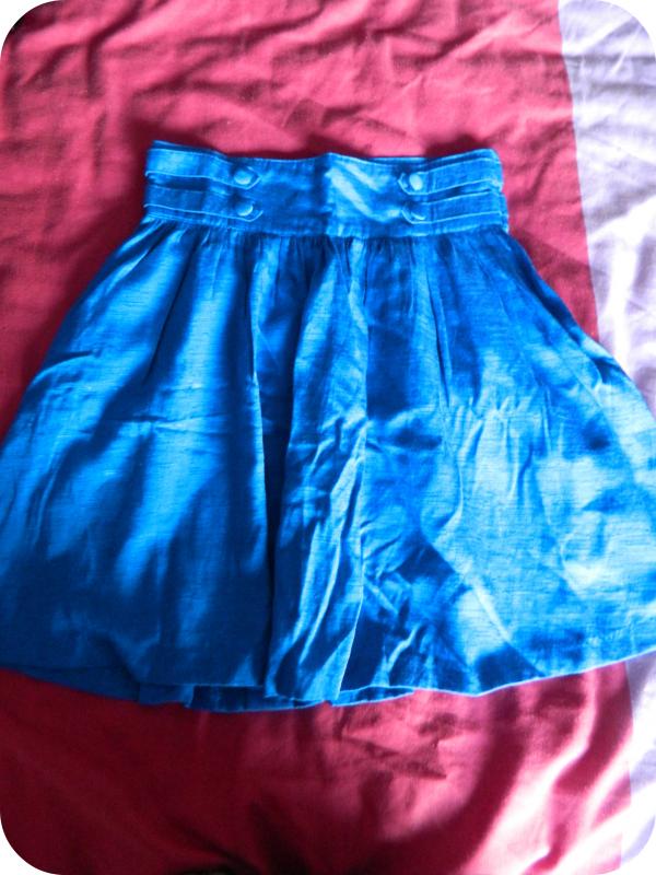 | H&M Royal Blue High Waist Skirt Size 10 Fitted waist, circle skirt with hidden side zip. L 20 inched W 14 inches £7.50 |