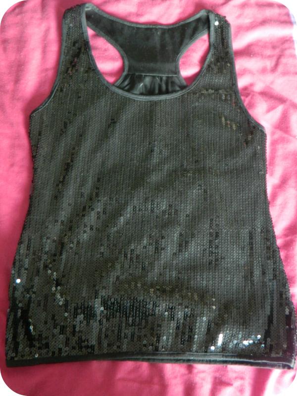 | Sequined Racer Back Vest Top Size 8 Black sequins on front and back L 25 inches B 16 inches £5 |