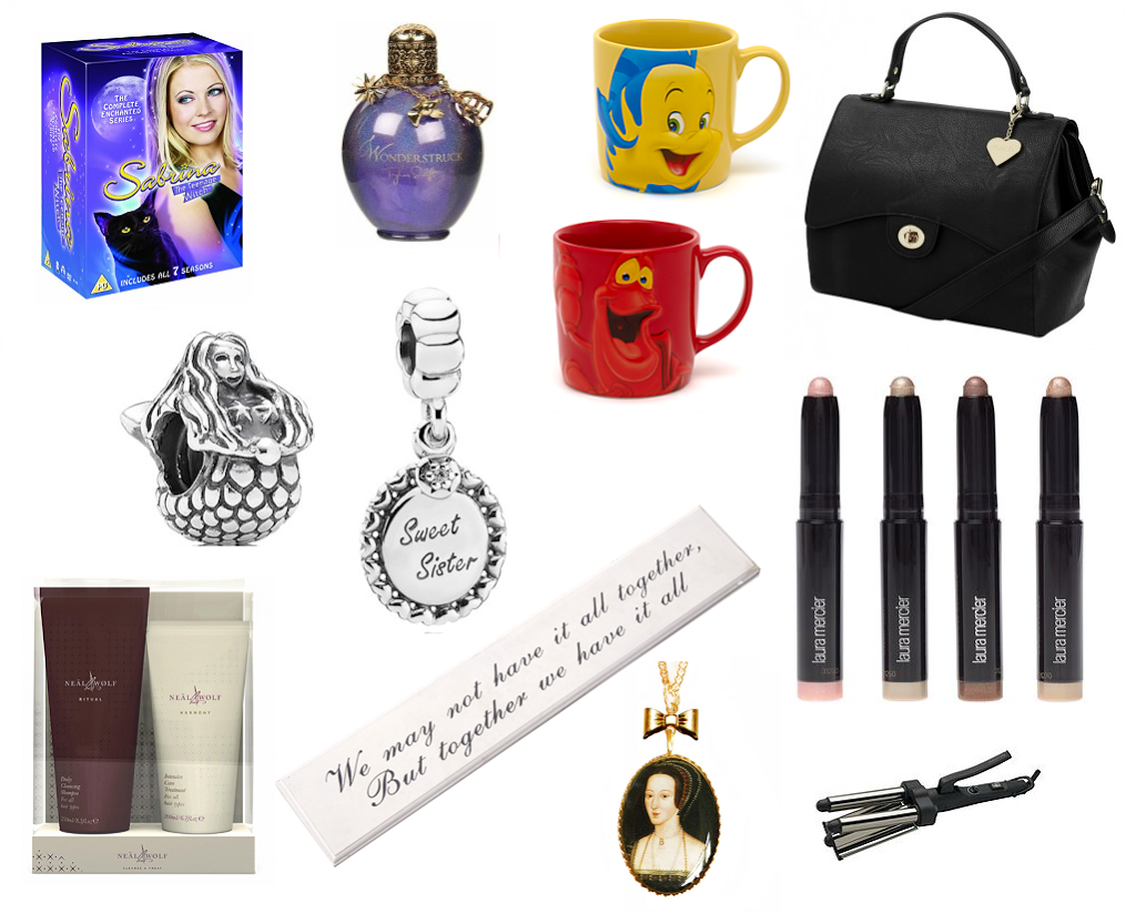 Anyone around my sister and my age must of watched Sabrina the Teenage Witch while growing up. My sister and I must of watched every single episode at least 5 times! One of the things that we spend a lot of time doing is reminiscing about being kids again, especially with one of our cousin’s Laura so I know for a fact my sister would love this Sabrina the Teenage Witch Box Set from Amazon. In fact, I know I would too! One of the things that my sister loves that I don’t is celebrity endorsed products so in that past I have bought her some celebrity perfume, especially while I worked in Boots. TJ Hughes has a great range of cheap celebrity perfume this year, and I did definitely consider getting my sister a bottle of Taylor Swift Wonderstruck, they’re a great idea for teen siblings! For a long time now every Christmas and Birthday I’ve bought my sister something The Little Mermaid related from a beach towel, to snow globes and ornaments. This year I spotted these awesome Sebastian and Flounder mugs in The Disney Store which are a total steal at £5 each! A more grown up gift is a new handbag. I love Marc B for beautiful handbags and I really think the Penny Tote would make a really great gift. A really good gift for a sibling should they have a Pandora bracelet is a charm! The mermaid one would be a great gift specifically for my sister but they have loads including this really nice one for a sister. They range from £20+ so there is one for every budget. As I mentioned in my gift guide for friends, Laura Mercier have some beautiful Christmas gifts available to buy on Space NK. I particularly like the Shimmer Effects Mini Caviar Stick Eye Colour Collection, it has some really beautiful neutral shades and because they’re in a pencil form even the most amateur can apply them. For a sister who really takes care of her hair (like mine) you can’t go wrong with Neal and Wolf. Since my last review of their products I’m hopelessly in love with the brand and if you want to treat your sister to something I would go for the Cleanse and Treat Duo Pack as it includes the Harmony Intensive Care Treatment at the beginning of the month. I raved on my last gift guide about the beautiful items available from Gifts and Pieces, for this gift guide i’ve gone with a wooden plaque with “We May Not Have It All Together, But Together We Have It All” my sister is obsessed with quotes (something we have in common) and this quote basically sums up her little family. A little online store I only recently discovered is Cheap Frills, it has some fantastically unique pieces like this Anne Boleyn necklace at bargain prices! Finally, the Enrapture Amplify Jumbo Waver is currently on offer in Boots for £39.99, I can’t stress enough how awesome a gift this would be. Major sibling points coming your way!