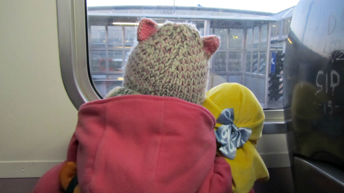 Morning. As usual, we slept in. So once we got up I shoveled down a yoghurt and a smaller than usual coffee, gave LM her cereal and toast while I got dressed. Then I dressed her in a Disney appropriate dress that she received from my parents for Christmas. While she finished breakfast and put on some make up before heading out to catch out bus. Thankfully our bus stop is just around the corner. On the bus LM always wants to sit right at the back if it’s empty. It takes about 15/20 minutes to get to the station depending on the traffic. At the station I allowed Little Miss to pick out a sweet in the shop as we had a 20 minute wait for the train. It was so cold so we hung out in the waiting room until the train came. It takes 45 minutes to get to the city and once there we had to get onto another train. There was another 20 minute wait so we shared a white chocolate and raspberry hot chocolate. I share because LM ate the cream and marshmallows and I drank the hot chocolate. I had decided to take a day off my Slimming World diet so I could treat LM to pizza. We arrived at the shopping centre just before lunch, but with just enough time to pop into the Disney Store.