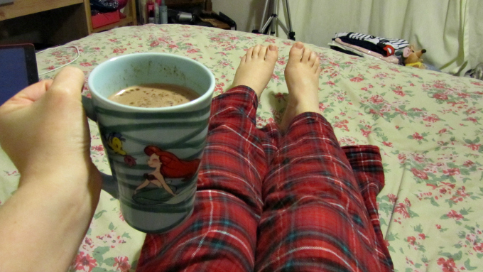 Evening. My mum collected us from the station and took us home. I was so happy to see Elsa and LM had to been so well behaved so I treated her to a Big Hero 6 game on my iPad. She played until bed at 7pm. Once she was all tucked in I took a bath and watched some Doug. I must have been in there a good couple of hours. Once out I sorted my skin, I settled down for the night with a hot chocolate.